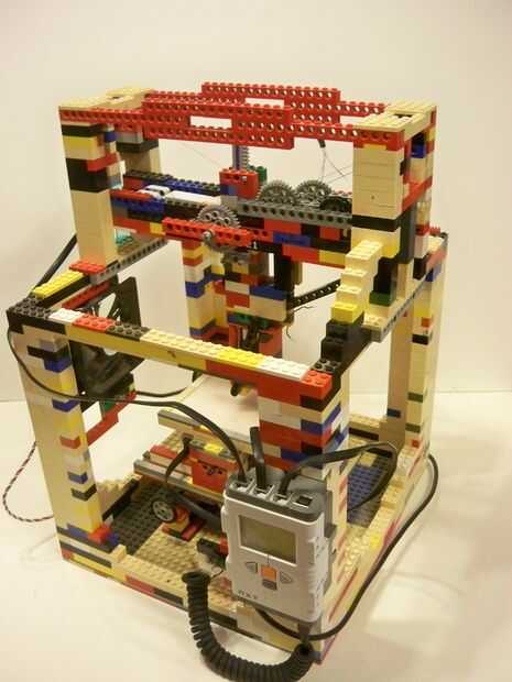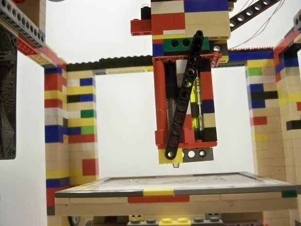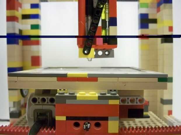 Pero mientras tanto, he incluido un archivo de Lego Digital Designer de la impresora completa, casi todas las piezas technic son exactamente la misma que en mi impresora, pero la estructura que solía colocaciones parte diferente de velocidad el proceso digital del edificio, la estructura y dimensiones son todavía los mismos. en cada eje X e Y hay 2 bloques suspendidos que colocan monedas para equilibrar el peso del motor a cada lado, para el motor de la extrusora utiliza un motor de ajuste de la lente de una vieja cámara VHS porque es esfuerzo de torsión de baja velocidad/alta. En el archivo .ldd, la caja verde a la derecha de los engranajes de la extrusora es el caso que hice, funciona perfectamente.