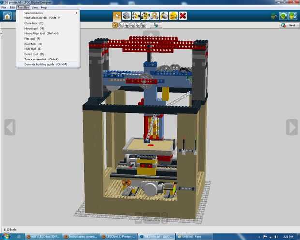 1, abra el archivo printer.ldd 3D de Lego Digital Designer