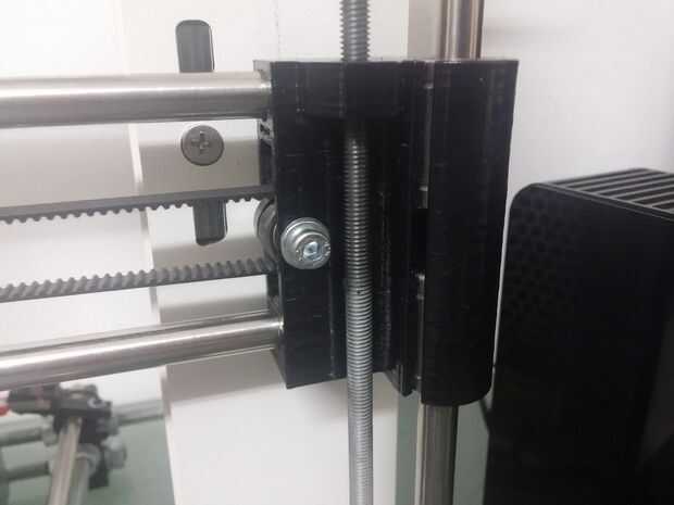 Después de un año de la impresión, claramente se aprecia que varillas roscadas no sirven para este tipo de aplicación. La barra sí mismo no es recta (que no es tan grande de un acuerdo porque hay barras recta manteniendo el movimiento recto), chirría bastante fuerte durante el movimiento y sus hilos Haz completos de goo negro que consiste en polvo, aceite y virutas de la fricción con la tuerca del metal.