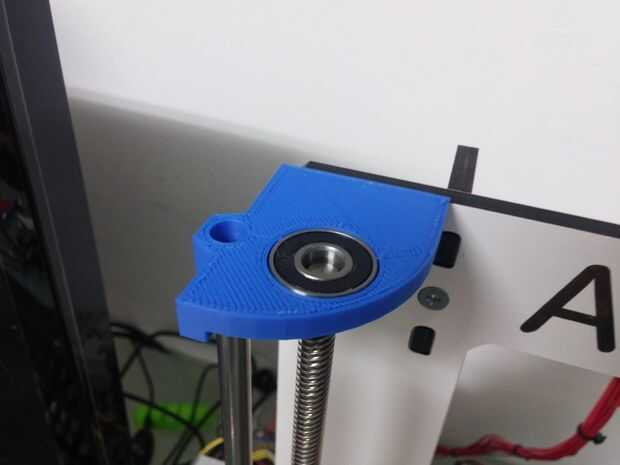 El viejo soporte superior solamente admite la barra recta, estaba flotando arriba de la varilla roscada, que no ayudan con él no sean rectos. Mejoré en el diseño mediante la inclusión de soporte para el husillo nuevo, que apenas lo necesita gracias a su rigidez. En vez de dejar que el husillo se mueven dentro de un agujero en el plástico, incluí los rodamientos que sostienen el tornillo firmemente en su lugar dejando girar libremente.
