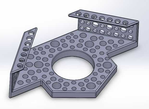El modelo a imprimir en Solidworks como archivo *.prt y se convertirán posteriormente en un archivo *.stl. Los agujeros se agregan en el modelo para reducir el uso de material como se imprimirán cuatro piezas con diferentes ajustes como comparación.