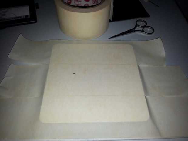 No tengo la cinta azul del pintor, así que utilicé la cinta de enmascarar más amplia que puedo conseguir hold off ya que probablemente no pueden ser tanta diferencia. La cinta adhesiva por lo tanto forma el la capa de base sobre el que se imprimirá en el modelo.