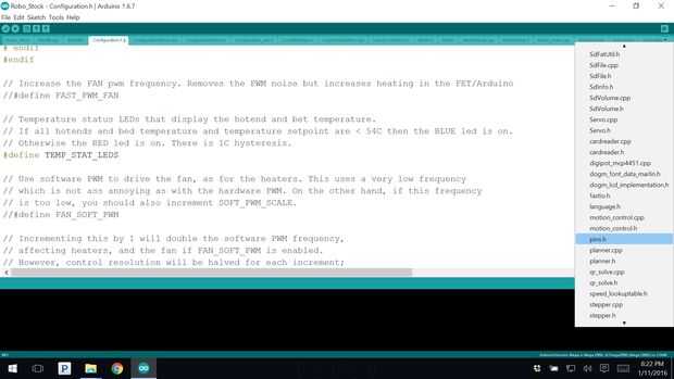 A la derecha hay una caída de menú, y cuando baje allí un archivo llamado pins.h.