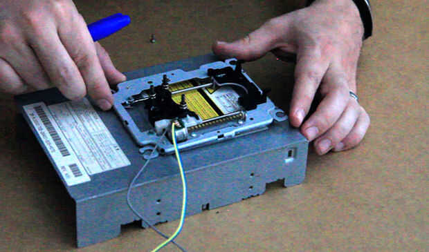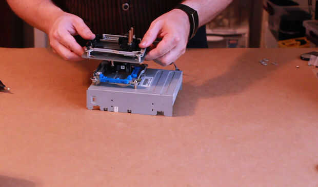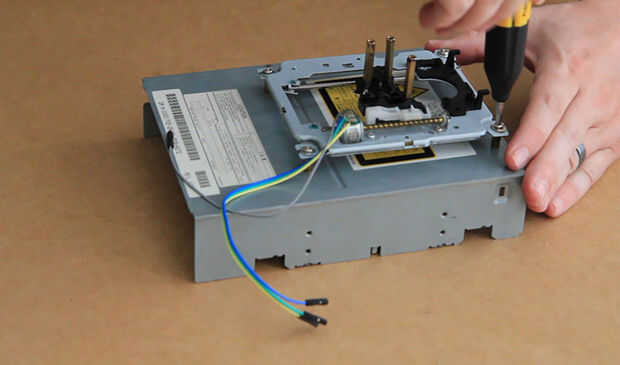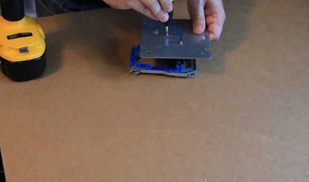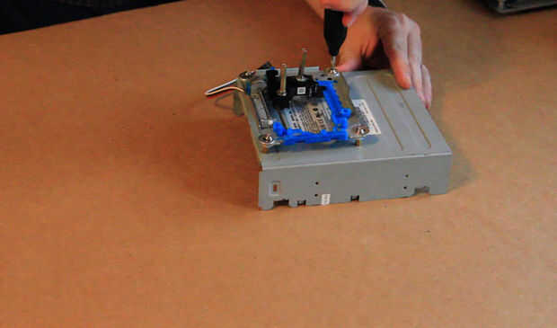Necesitamos algún tipo de carcasa para montar las bandejas de motor en. Usé los casos de unidad óptica ellos mismos. Vamos a empezar con el eje y. El eje y ir hacia adelante y hacia atrás, así que tome una de las bandejas motor y montaje paralelo a la longitud de la carcasa cerca de uno de los extremos. Asegúrese de que está alineado tan recto como sea posible y utilizar algunas motherboard tornillos para montarlo.
