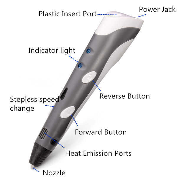 La pluma de 3D tiene controladores de 3 (o más). Los controles primarios son grueso, extrusión directa y extrusión hacia atrás. Sería bueno controlar automáticamente todos ellos, pero el que es casi una necesidad de control es la extrusión hacia adelante. Este botón empuja el filamento del caliente-final, una acción que se requiere para la impresión 3D.