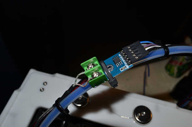 El termopar PT100 informes de diferencias de la temperatura mucho diferentemente que los termistores final caliente tradicional y requiere de acondicionamiento de señal y amplificación en orden para el 1.4 de rampas leerlo. Lo que necesitará hacer es alambre GND terminal a cualquier tierra en el tablero de 1.4 de rampas y la misma para el VCC (5V). SCK debe ser conectado al pin SCK (AUX-3 pin 5). TAN debe ser conectado al pin MOSI (AUX-3 pin 3). Por último, CS debe ser alambrado a la clavija 66 en AUX-2 de la tabla 1.4 de rampas.