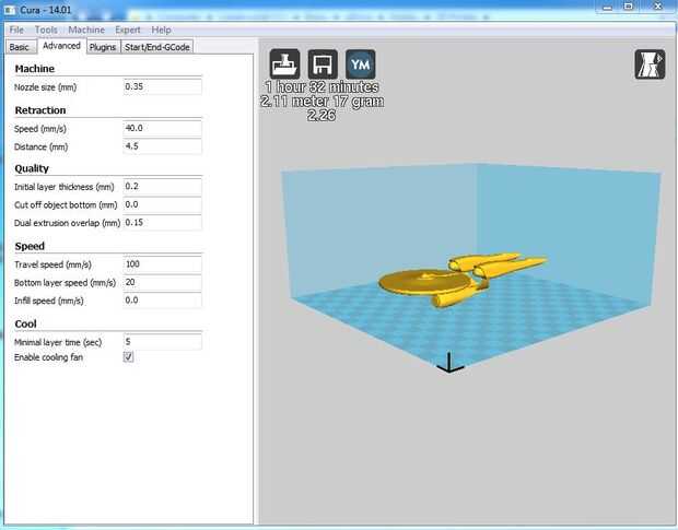 Como se mencionó anteriormente, Im usando la Cura para la impresión y la creación de la Gcode: