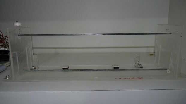 Todo lo que tienes que hacer es montar una estructura de "U" y añadir dos tubos donde se moverá la cabeza de la impresora, también añadir los soportes de los rodillos y la polea.