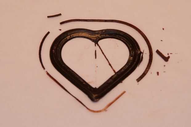 - No imprimir demasiado rápido. El corazón en la figura 2 fue demasiado rápido. El chocolate no solidifique y estorban. Las capas superiores son razonables. Pero el inicio fue mal.