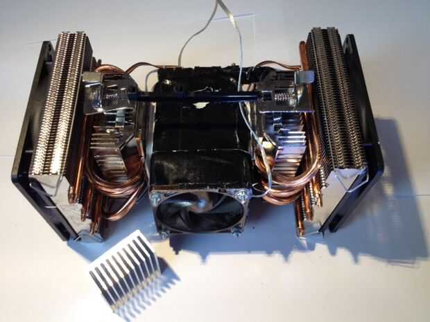 Los elementos de Peltier son capaces de enfriamiento. Pero el aluminio refrigeración aletas que he ordenado son demasiado pequeños. Cambio de refrigeradores de la CPU soluciona este problema, pero agrega mucho peso a la cabeza de impresora.