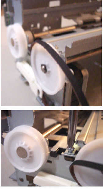 Tome el cinturón conductor apagado y el tornillo entre los engranajes,