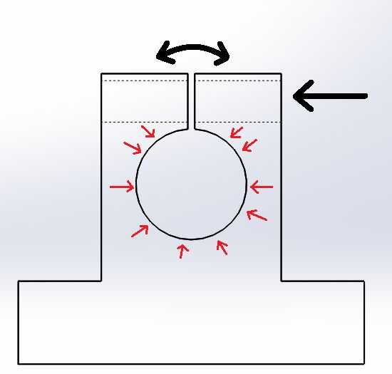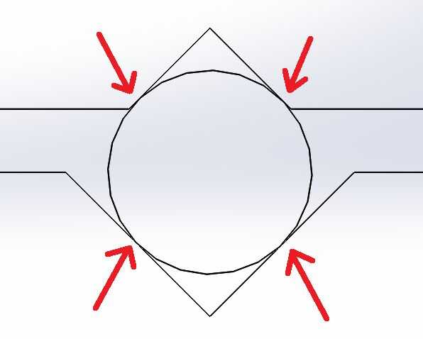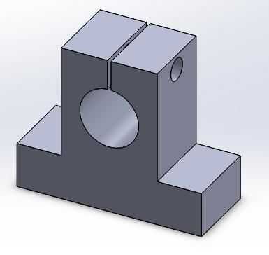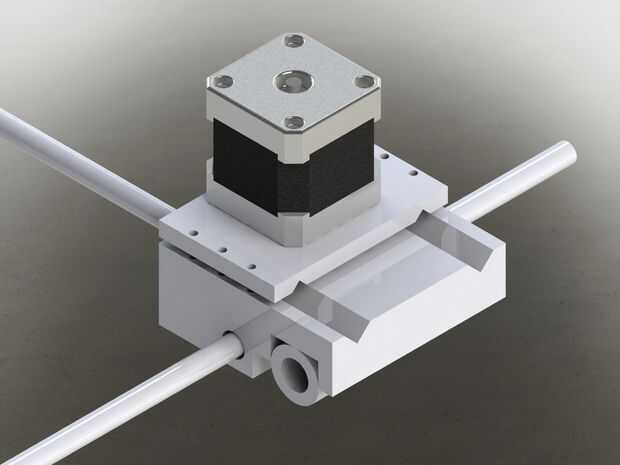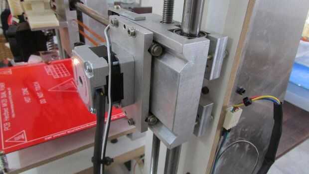 Otra solución adoptada corresponde a la fijación del rodamiento en las guías lineares del eje X para que la centralización y el correcto espaciado de las mismas. Para ello, se trabaja a máquina un conducto de v a 90 grados. Así, el eje lineal se fija entre dos conductos, el correspondiente inferior y otro superior teniendo como parte de una tapa de cojinete. En esta configuración que el conducto sirve como un concentrador, ya que el ensamblado está apretado, el eje se ve obligado a mover solamente el conducto del centro, que es el punto de mayor paralelismo entre los ejes lineales, permitiendo mejor distribución de las fuerzas de los cuatro puntos de contacto.