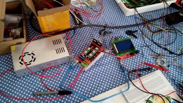 Al principio del proyecto fue adquirido un kit importado (Figura 84) con los siguientes componentes: microcontrolador Arduino Mega, protector rampas 1.4, controladores de motor paso a paso, pantalla LCD y MMI (interfaz hombre-máquina) construida, además en el extremo caliente de la extrusora. El microcontrolador Arduino Mega es el cerebro del sistema, almacena toda la programación y conecta directamente con el escudo de rampas. El escudo es responsable de conectar los dispositivos que conforman el sistema, como sensores de motor controladores, HMI, sistema de alimentación, mesa caliente y extremo caliente.