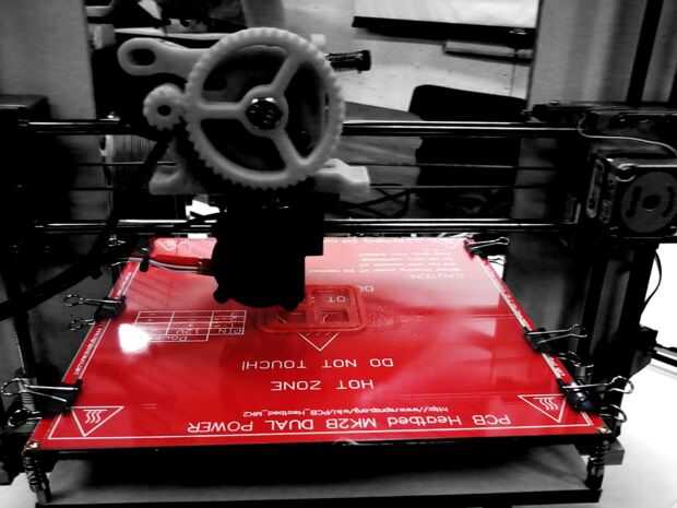 Para la extrusión de filamentos, decidimos comprar una extrusora con extremo caliente ya juntado y fijamos en el eje X del vehículo. También adquirimos una tabla calentada (PCB Heatbed MK2B energía Dual - RepRap estándar), que hacen que las temperaturas de equilibrio para la impresión de un objeto.