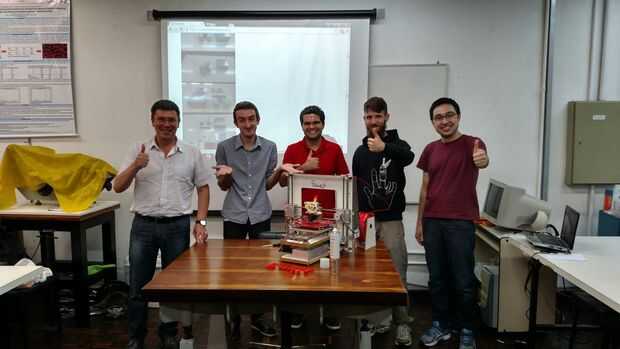 Con la máquina en pleno funcionamiento, completamos nuestra graduación con la aprobación de los profesores en la banca y garantizar todavía algunos llaveros para quienes estuvieron presentes en nuestra presentación final.
