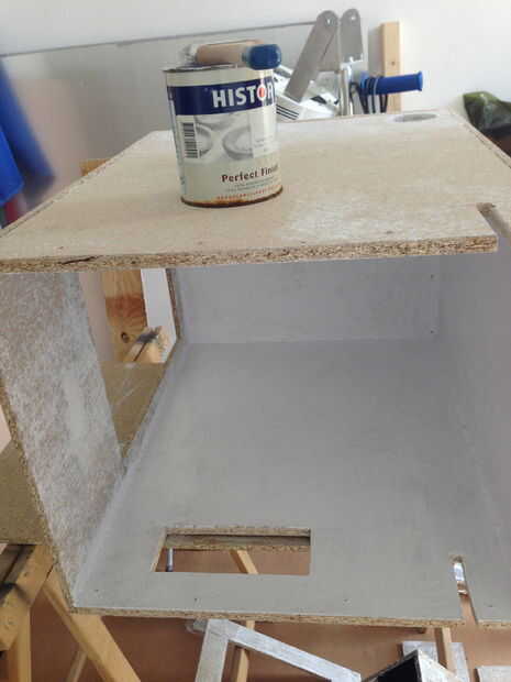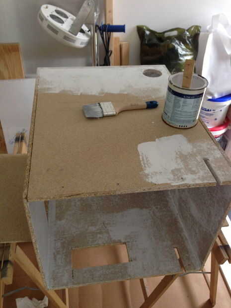 Una vez que el pegamento se haya enfriado puede pintar la caja y la puerta de un color de su elección. No te olvides de probar montar la puerta antes de hacer la pintura vigorosa.