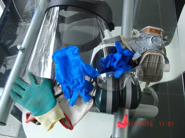 Use su careta o gafas y guantes apropiados al cortar, limar, pulir, trabajar con disolventes y productos químicos.