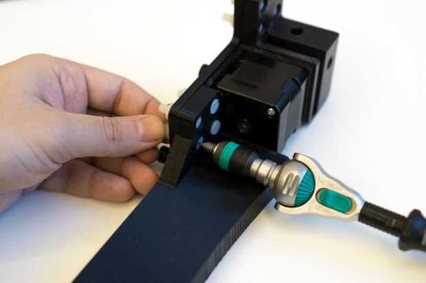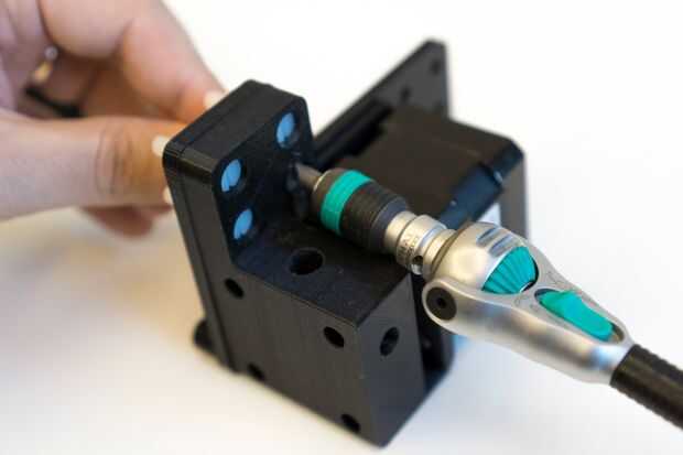 Engranajes de insertar en la ranura, luego conecte motores paso a paso. Uso de magnetizador / demagnetizer herramienta para magnetizar su llave hexagonal. A continuación, inserte los tornillos con motores paso a paso, de los agujeros en las piezas de ranura. Conecta porta parrilla, base a b piezas y ranura piezas juntos.