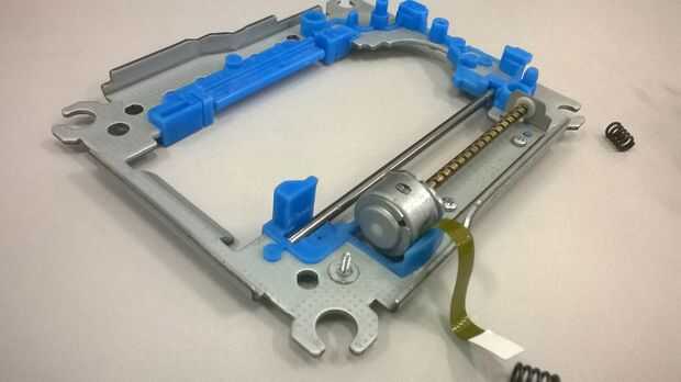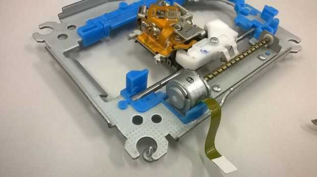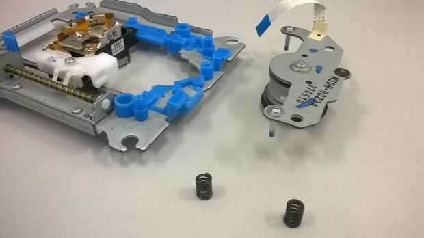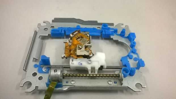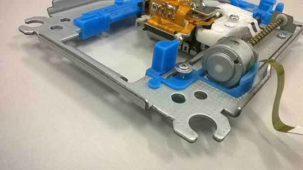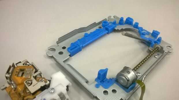 En primer lugar, suelta los tornillos que fijan el motor sin cepillo (uno que hace el CD de la vuelta), después de que, con cuidado, retirarán el módulo del laser de la estructura.
