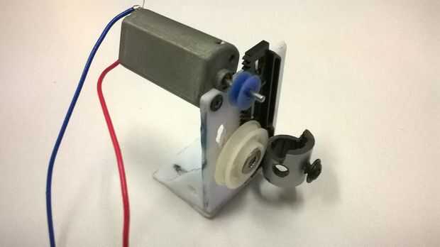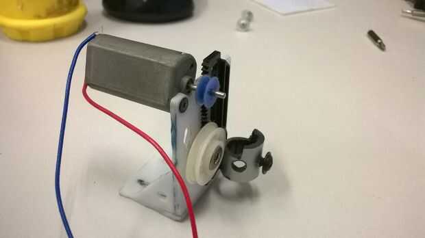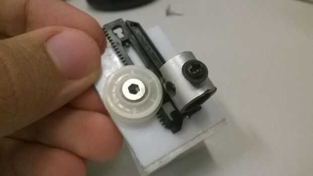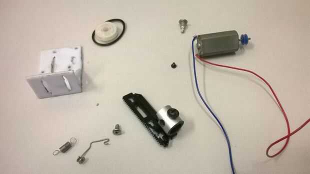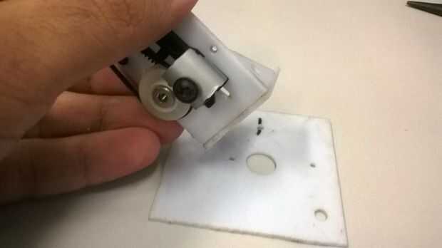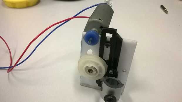 Los engranajes tomé de reproductores de DVD y lectores de CD y el motor de un lector de CD. Con la dremel corté las piezas blancas de acrílico, utilizando pegamento para fijarlos.