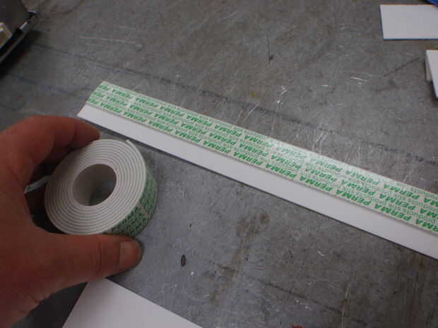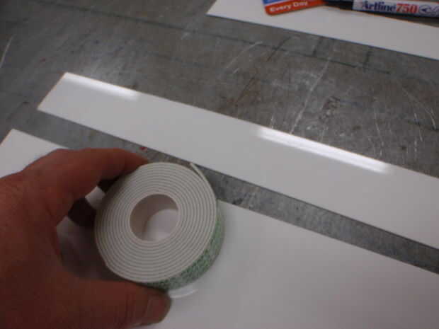 La hoja necesita una superficie resbaladiza y un poco más suave que el acero para que no se dañen cuando se corta. Usé una tira de plástico con cinta de doble cara, asegúrese de que es perfectamente plana y no es bordes afilados para el vinilo a enredarse en las.