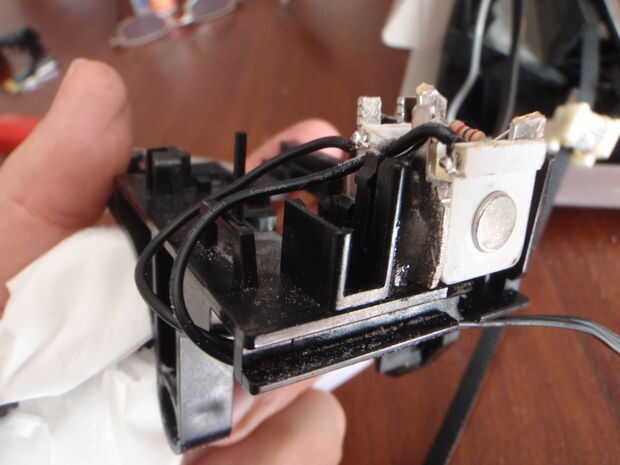 Colocación de la bobina es muy difícil, como tiene que ser cuadrado, plano y no tocar la placa de corte cuando está energizado. Dedico un poco de tiempo para llegar justo antes de pegar abajo con pegamento estupendo arreglo rápido.