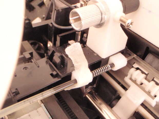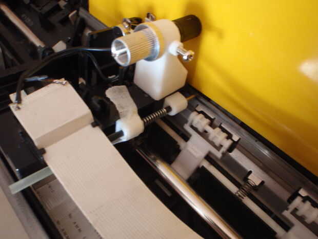 También encontré que como la impresora tiene un par de engranajes en el mecanismo, la pequeña cantidad de reacción tienen, causando algunos de los cortes no a por aproximadamente 1/2 mm. muy molesto cuando te van a quitar el wast de la etiqueta engomada, por lo que voy a pasar el motor paso a paso, por lo que directamente conduce el rodillo.