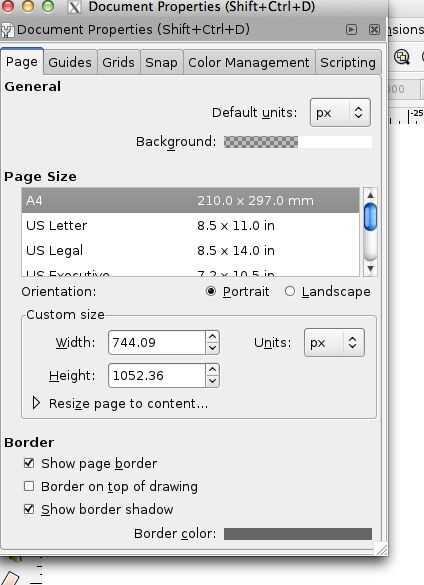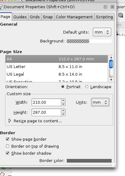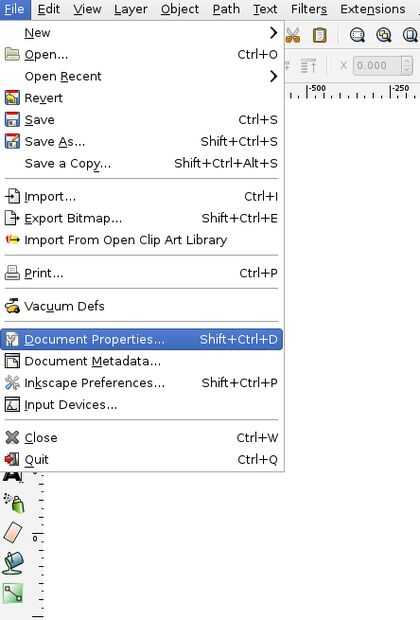 - Abrir Inkscape y haga clic en archivo / propiedades del documento