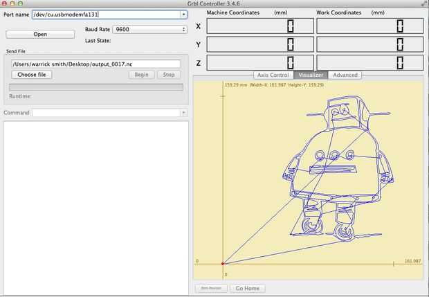 - Abrir Grbl y haga clic en elegir archivo y encontrar su Ggode