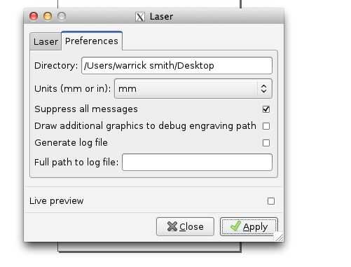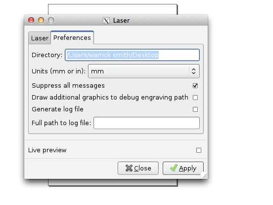 - En el pop-up cuadro de Asegúrese de que la ruta del directorio es correcta y haga clic en la ficha de láser
