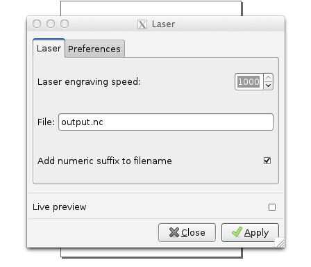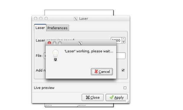 - Usted debe obtener un cuadro de trabajo de laser y un Gcode aparecerá en la parte superior de mesa