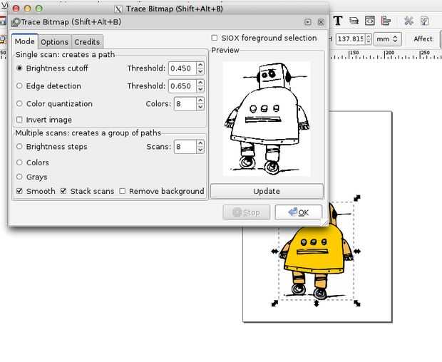 - Un pop-up con un montón de opciones para jugar con la caja aparecerá haga clic en actualización y ok cuando haya terminado. La imagen debe hacerse de líneas negros sólidos cuando haya terminado.