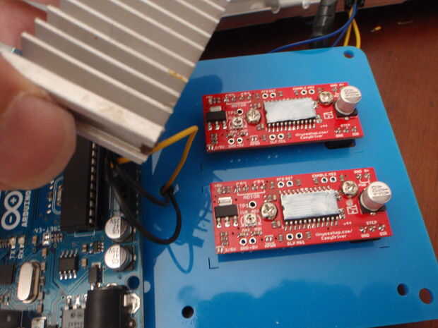 - Encontré que los controladores de fácil conseguir muy calientes así que un poco de grasa térmica y un viejo disipador de calor ayudó a mantener las cosas frescas.