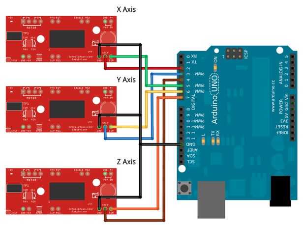 - En el controlador del eje X paso va al pin 2 y DIR va al pin 5