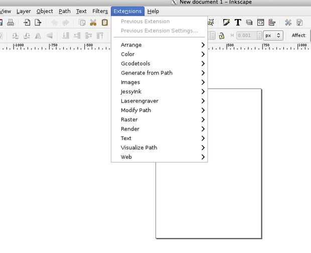 - Ahora abrir Inkscape y debe tener extensión llamada laserengraver.