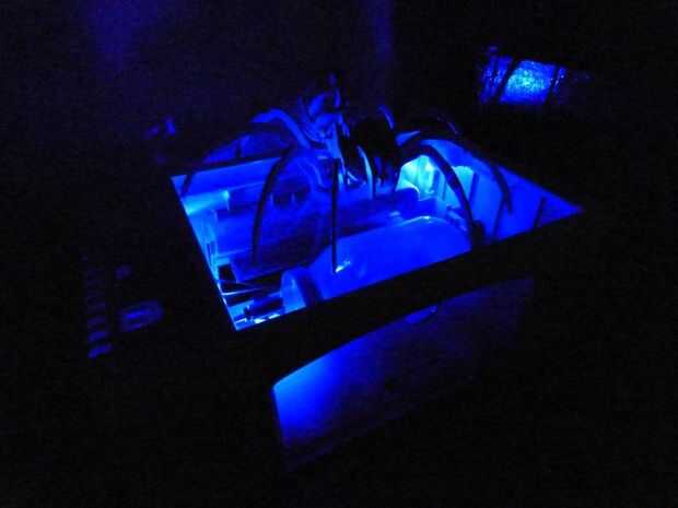 Tengo una tendencia a hacer las cosas más complicadas que necesariamente. Eso es lo que sucedió a este proyecto. Comenzó con sólo modificar una impresora para rodar una botella de vidrio como liquidhandwash había hecho, pero eso era de simple para mí. Luego he añadido un regulador de velocidad mediante un potenciómetro. ¿Y qué pasa con leds? He añadido dos de ellos sólo por el efecto azul cool que dan. Acabado? - no. Puse en la esquina de mi habitación en un estante que sucedió tener un antiguo reproductor de dvd atado a la parte inferior (sé que suena ridículo - era joven cuando hice ese tipo de cosas.) :) Así que, ¿por qué no enganchar el vaso de roca para el reproductor de dvd por lo que se puede activar y apagar el reproductor de dvd remoto? Es lo que hice. Entonces era satisfecho.