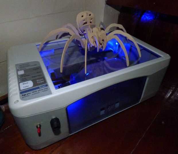 Hace años de que me encontré en una impresora hack de monedas vaso liquidhandwash había creado. Llamó mi atención porque me ha pasado que tiene la impresora exacta sentado en mi habitación esperando a ser utilizado para algo.