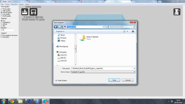 Miedo no hay una solución y suerte es tan simple como una actualización de Software a la tipo A máquinas serie 1. Con esta actualización podrás imprimir directamente para el almacenaje a bordo de la impresora de su motor de corte de preferencia... no hay más archivos de GCODE! Woohoo!