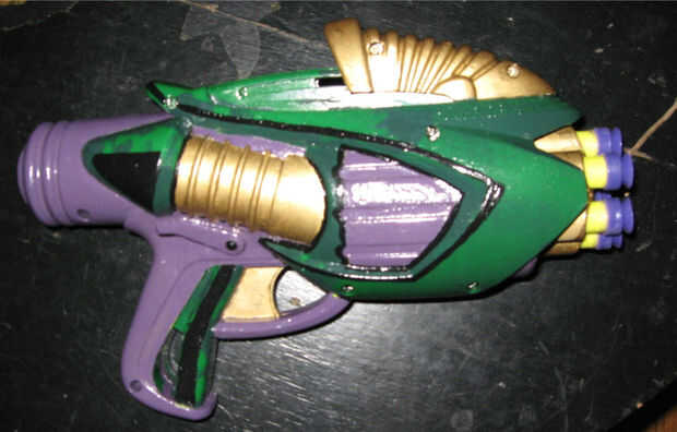 También me he echado en unas fotos de la pistola de dardos he modificado para que coincida con el traje. Cada villano necesita unos apoyos!