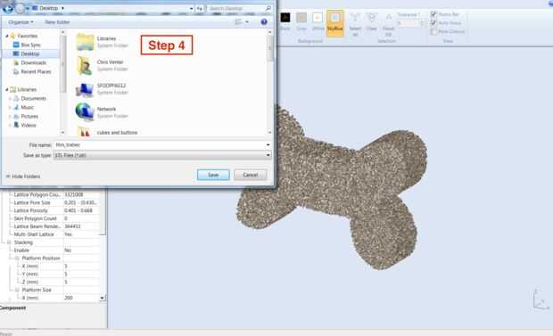 Convertir material a granel de la modelo en una estructura trabecular, un enrejado en titanio osteoimplants. Las células tienden a adherirse a este tipo de estructura.