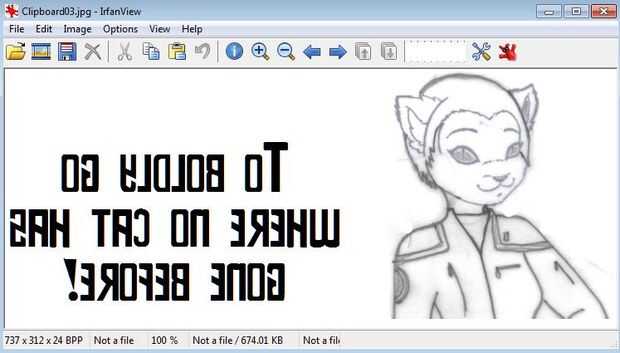 Tenga en cuenta que se imprimirá en la camiseta al revés, como en un espejo. Esto es importante si va a imprimir palabras o dibujos que tienen una dirección... por ejemplo un coche o la foto de tu gato, si / she es como mi gatito Enya, que es muy asimétrica.