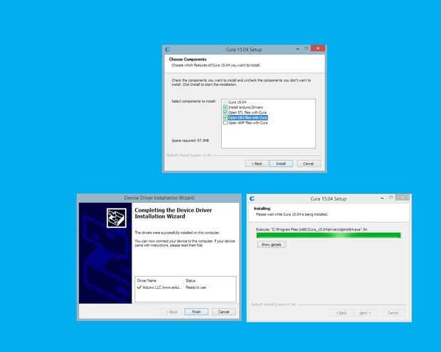 O Cura é um software máquina de cortar, pega seu modelo e brecha em várias camadas transformando o modelo em 3D coordenadas para serem enviadas para impressora. Durante un instalação irá aparecer uma janela para instalar drivers no Arduino, caso ainda não tenha.