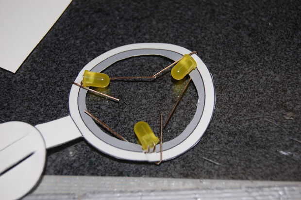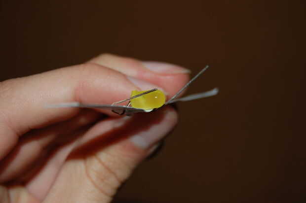 Para empezar, doblar la cabeza del LED hacia adentro hacia el centro del círculo.