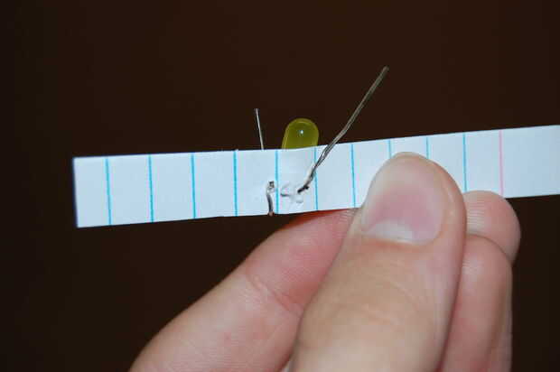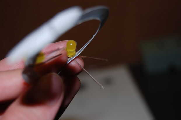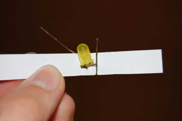 Ahora doble el segundo cable al revés y sobre así que pone en la parte superior del borde al lado de la cabeza de LED.