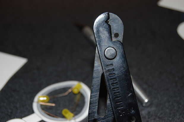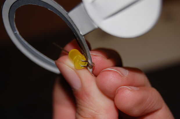 Una vez que completa, cortar el cable sobrante que se pega en el centro a nivel con la parte superior de la cabeza de LED.