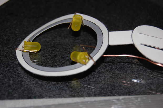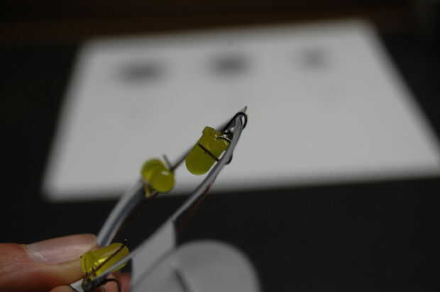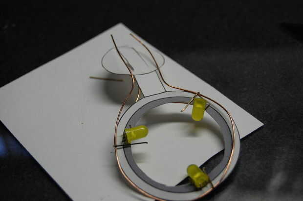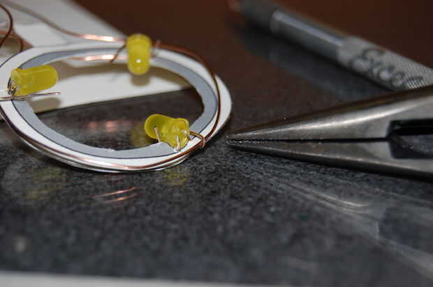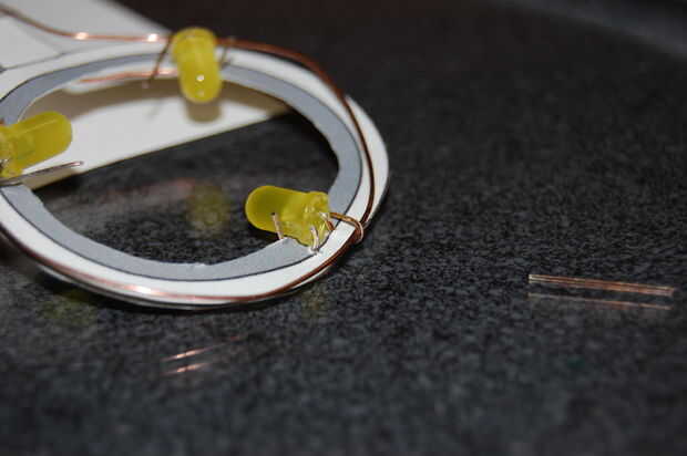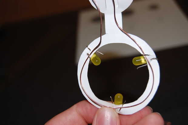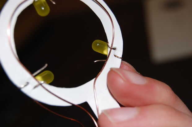 En la parte inferior, empezar levantando las puntas ligeramente empujadas hacia adentro para arriba. Usted quiere ser capaz de encajar el cable por debajo de ellos. Ahora, ajuste el cable por debajo de todos los cables y luego terminar cerrando bien las puntas sobre el alambre. Para ello no sólo pulsando sobre ellos pero luego doblando hacia arriba por lo que sobresalen hacia arriba al lado de la cabeza de LED.