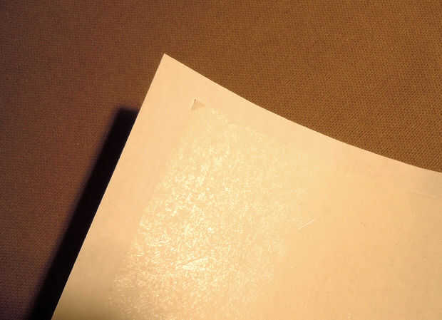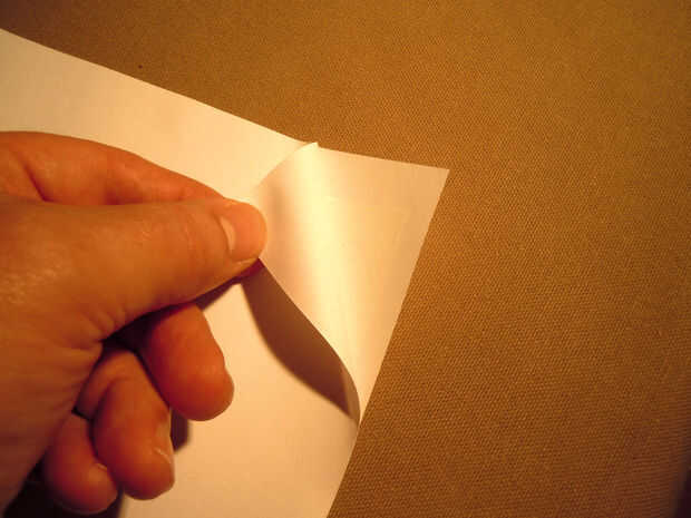 Nota: si, después de pelar una hoja de papel, película plástica no se enlaza a la otra hoja de papel, vuelva a colocar la hoja superior de papel y volver a planchar el "sándwich" - agregar un poco más de tiempo y un poco más de presión o aumentar la temperatura un poco, si es posible.
