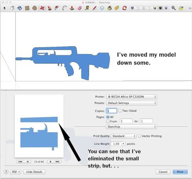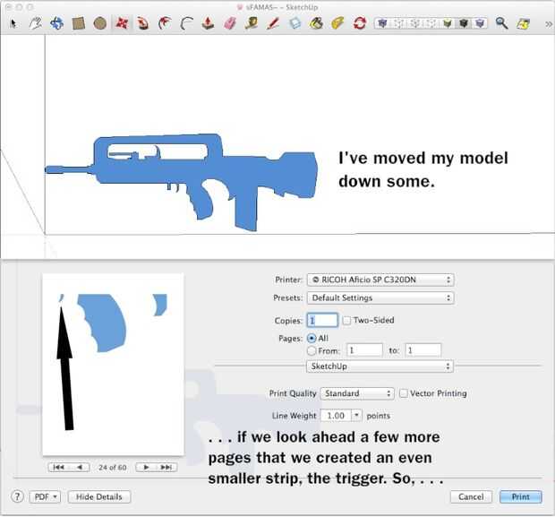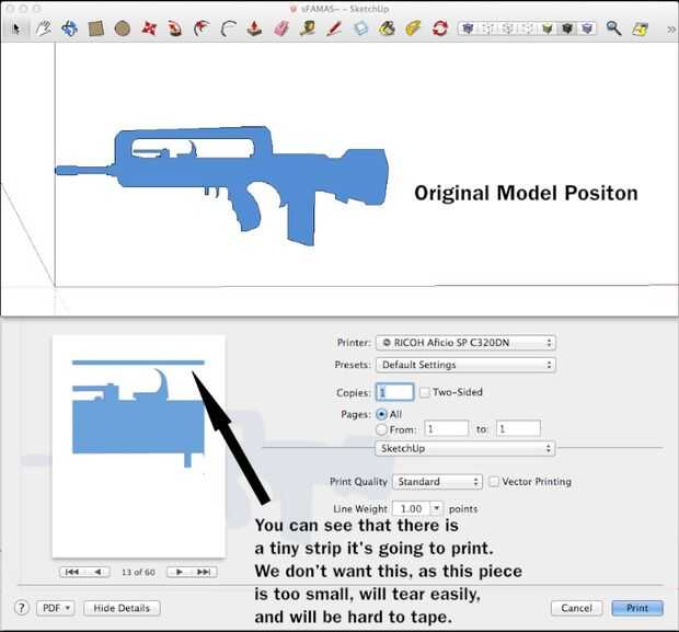 Después de configurar el modelo en Sketchup, imprimirlo. Sugiero que imprimas en cartulina gruesa. Es mucho más fácil trabajar con, más fácil rastrear, y dura más tiempo. Cuando haya terminado impresión corte todas las piezas. Organizar y cinta.