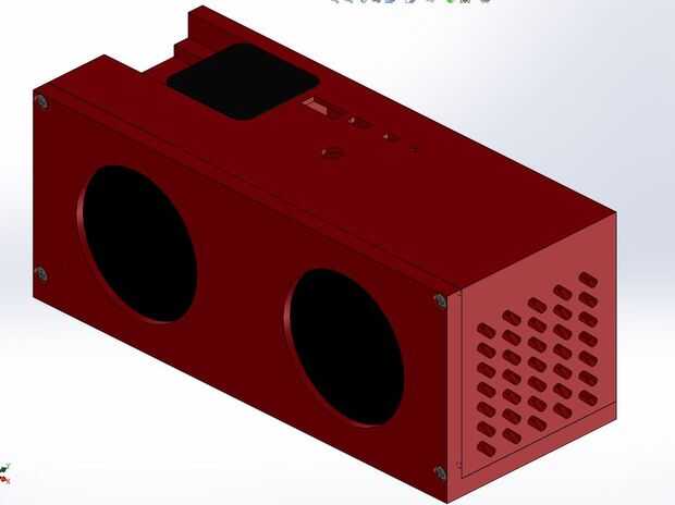 El CAD para la cáscara externa se realizó en Solidworks pero cualquier programa debe ser fino para hacer su propia caja personalizada. Modelo de los altavoces, módulo Bluetooth y patrones de orificio para la entrada del USB de las dimensiones en el ultimo paso. El tamaño de los altavoces y el amplificador será las principales limitaciones de las dimensiones de la caja. Elegir usar un 1/4 de pulgada de material para todas las paredes. A partir de ahí, fui capaz de tamaño mi caso y hacer dos depósitos separados (en Solidworks hay un comando de división que crea dos órganos separados de una sola pieza). Una cáscara contiene la electrónica y el otro tiene los altavoces. Las dos piezas se pueden descargar si estás realmente interesado. El modelo final tiene el módulo de Bluetooth en una pista deslizante con el recesssed superficial en la parte superior de la pieza. He visto un puñado de hablantes con ranuras en el lado de lo que supongo es que el cono vibrante igualar la presión de aire y producir un bajo inferior. Me fui con algo un poco más estética con las rajas que son inclinadas en lugar de recto a través de orificios. La espalda y la parte inferior de la caja no tienen ningún detalle, pero no dudes en añadir un poco más estilo con un relieve emblema o incluso su nombre. La ventaja de la impresión 3D es que permite obtener lujo sin agregar costos. Detalle extra = libre