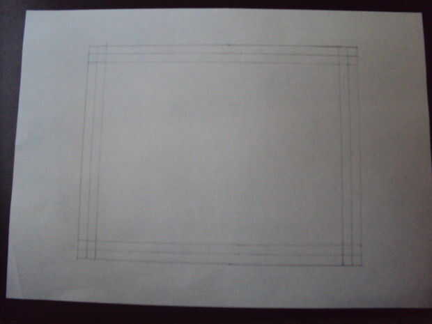 En un papel dibuja 3 rectángulos uno dentro de otro como se muestra en la segunda imagen.